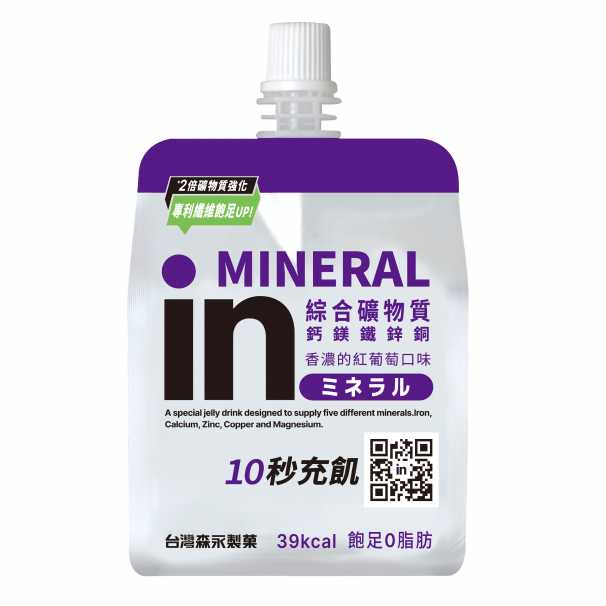 森永in果凍-綜合礦物質,添加人體所需鈣質、鐵質,以及常被忽略但也相當重要的鎂、鋅、銅。